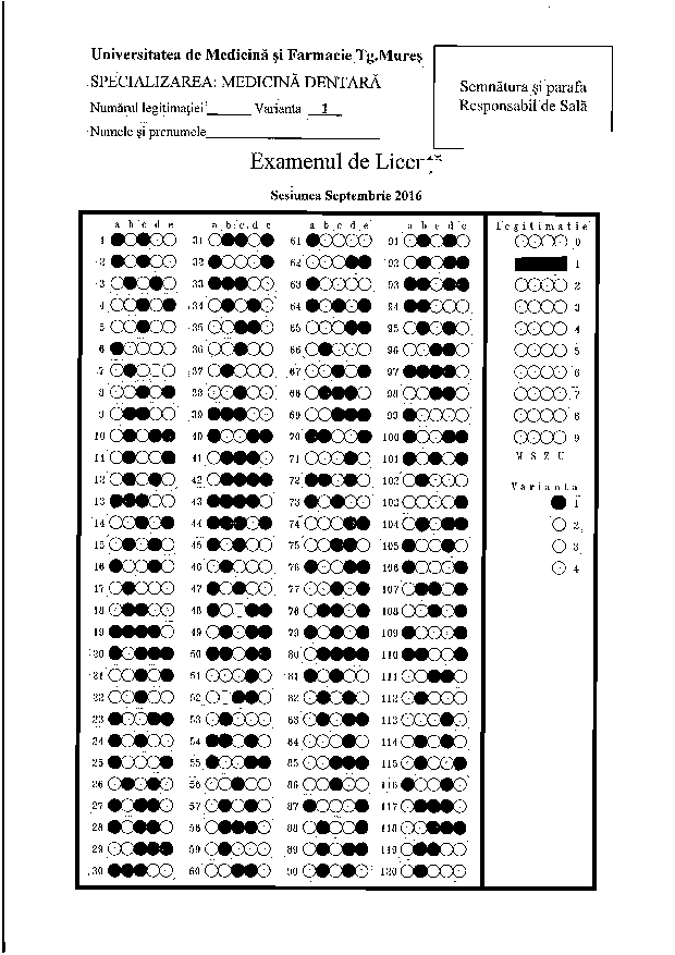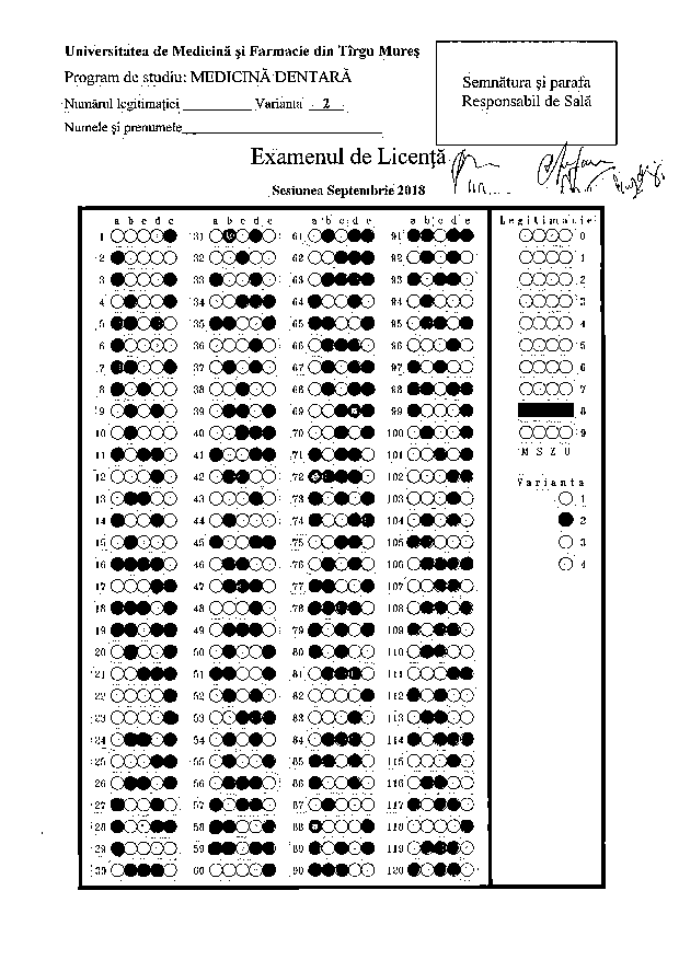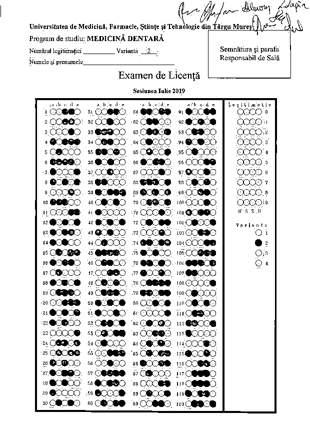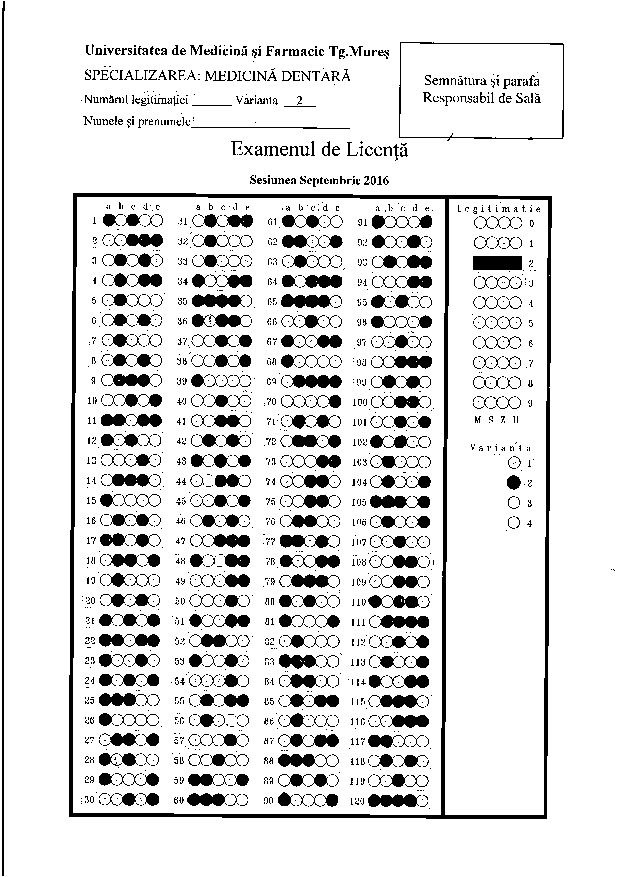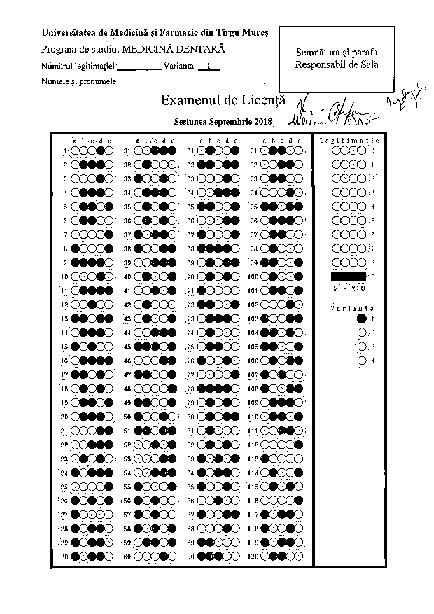 Repartiţia studenţilor pe săli - PROBA SCRISĂ - Programul de studiu Tehnică Dentară