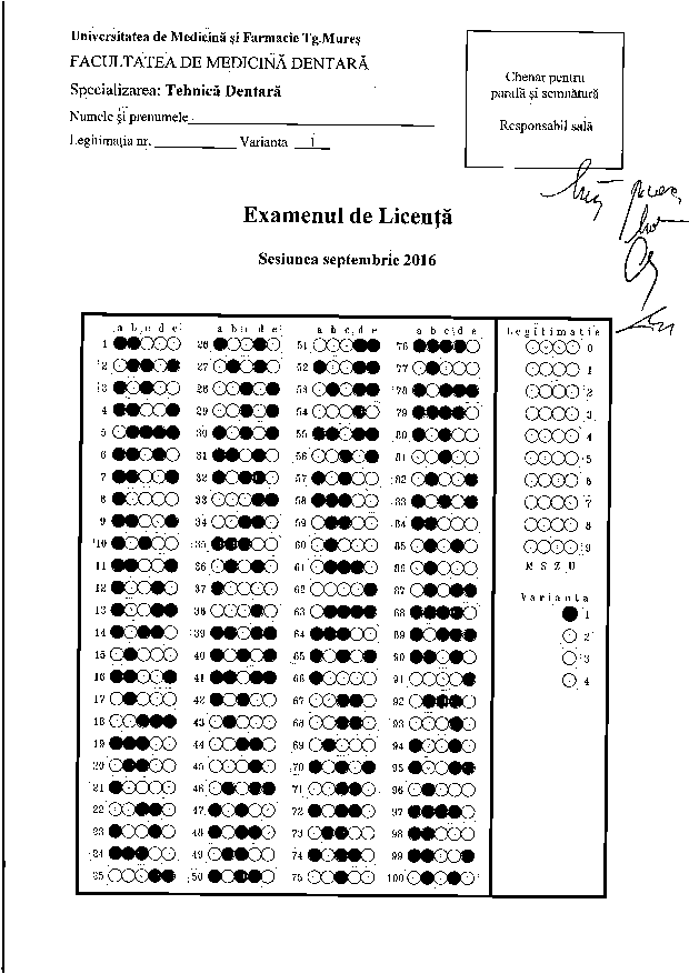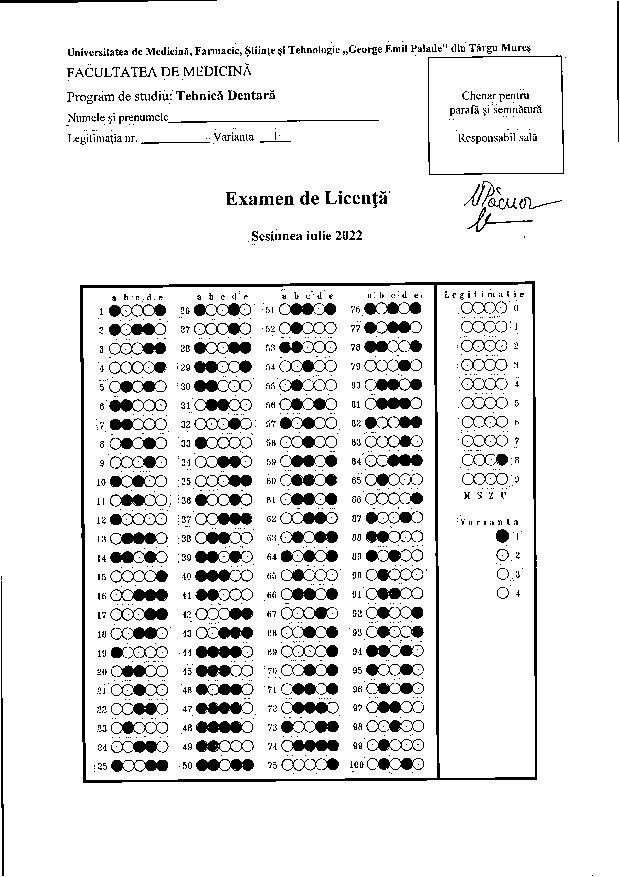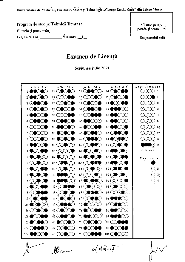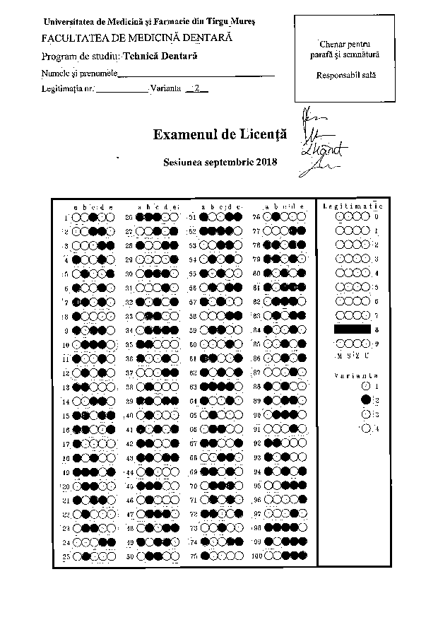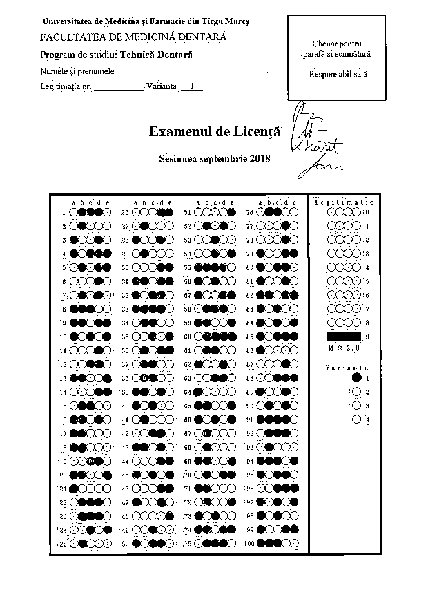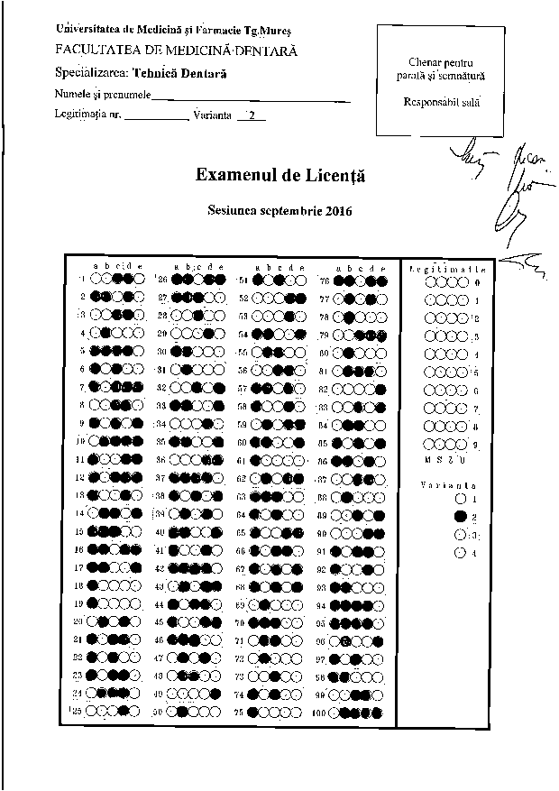 Informaţii privind desfăşurarea examenului de licenţă - Programul de studiu Tehnică Dentară