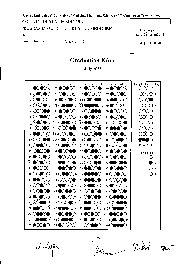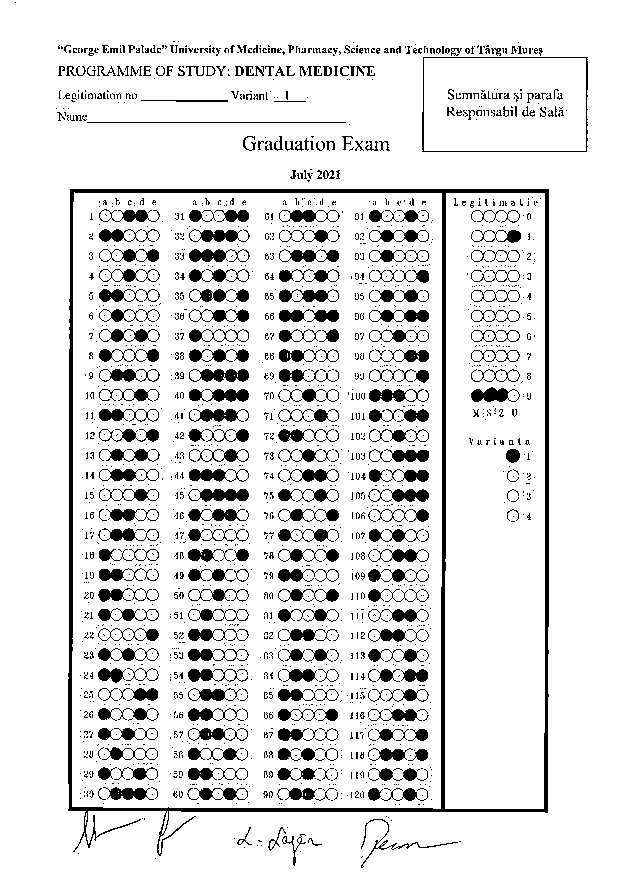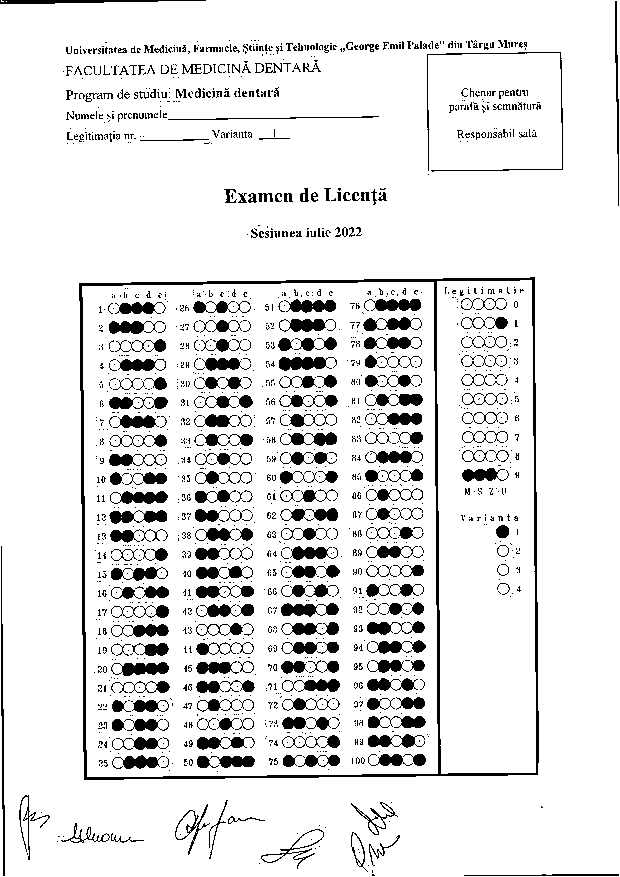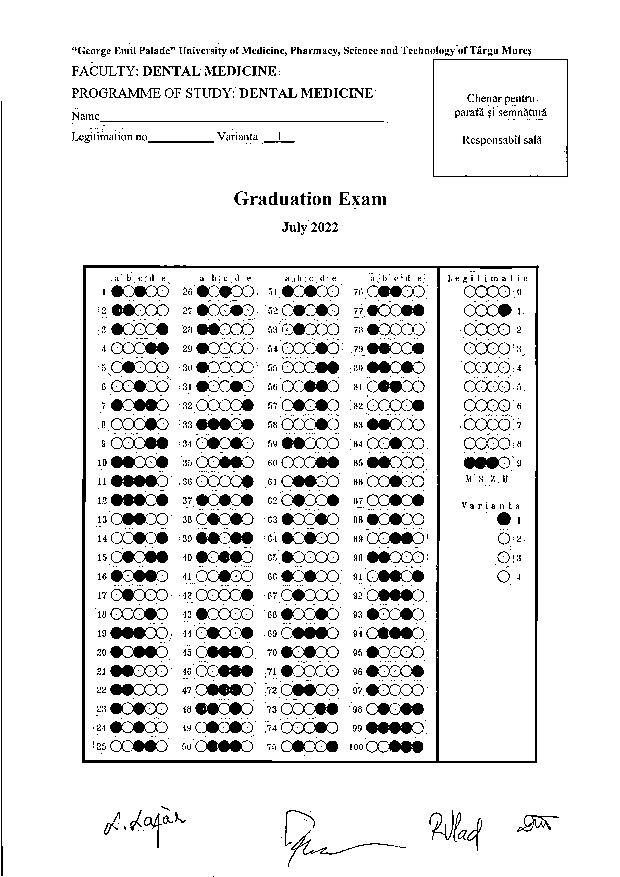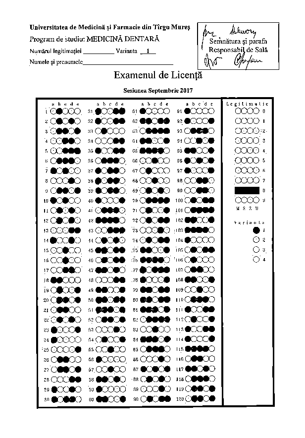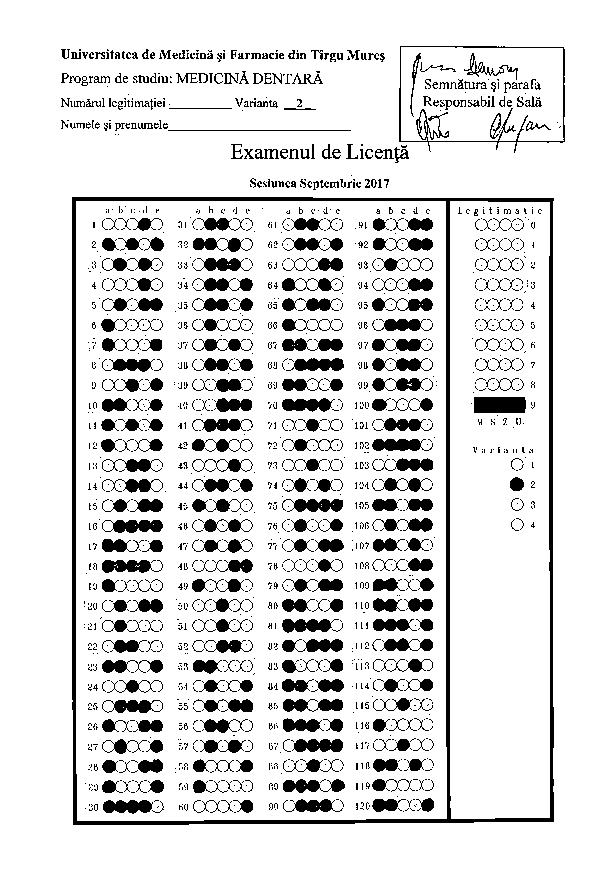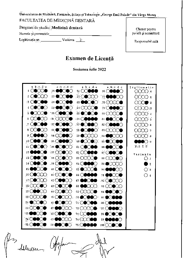 Informaţii privind desfăşurarea examenului de licenţă - Programul de studiu Medicină Dentară