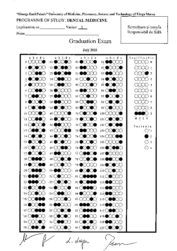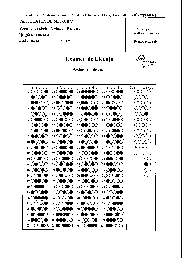 2. Tematica examenului de licență - Program de studiu Medicină Dentară