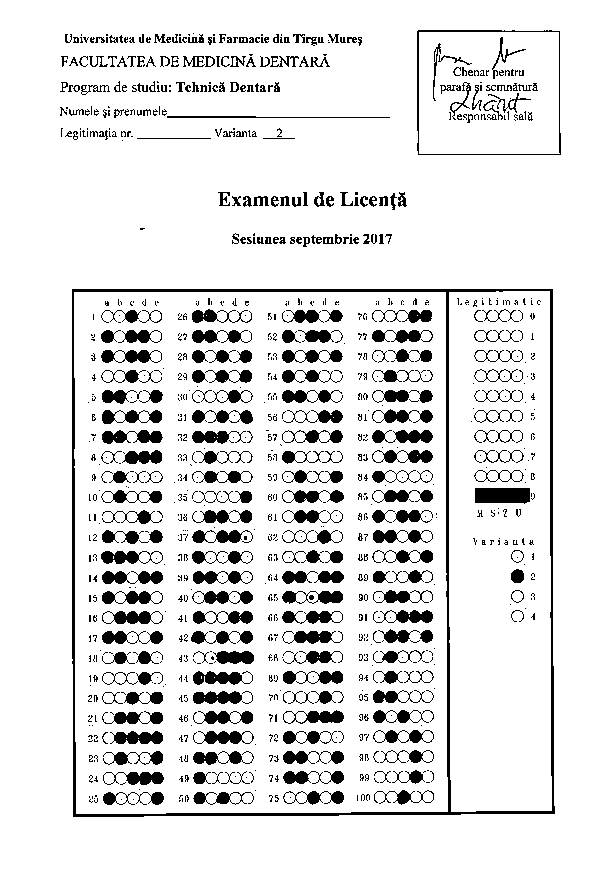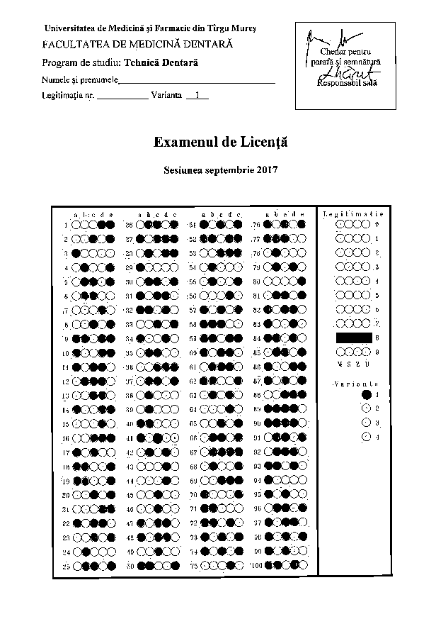 Tematica examenului de licenta - Program de studiu TEHNICA DENTARA