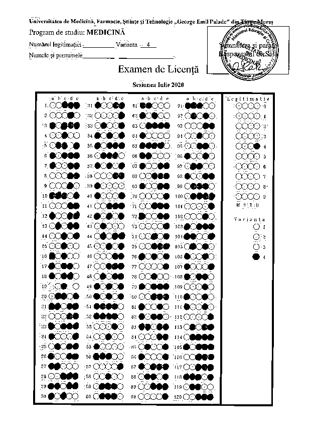 În urma Deciziei Comisiei de contestații licență iulie 2020 grilele corecte sunt următoarele: