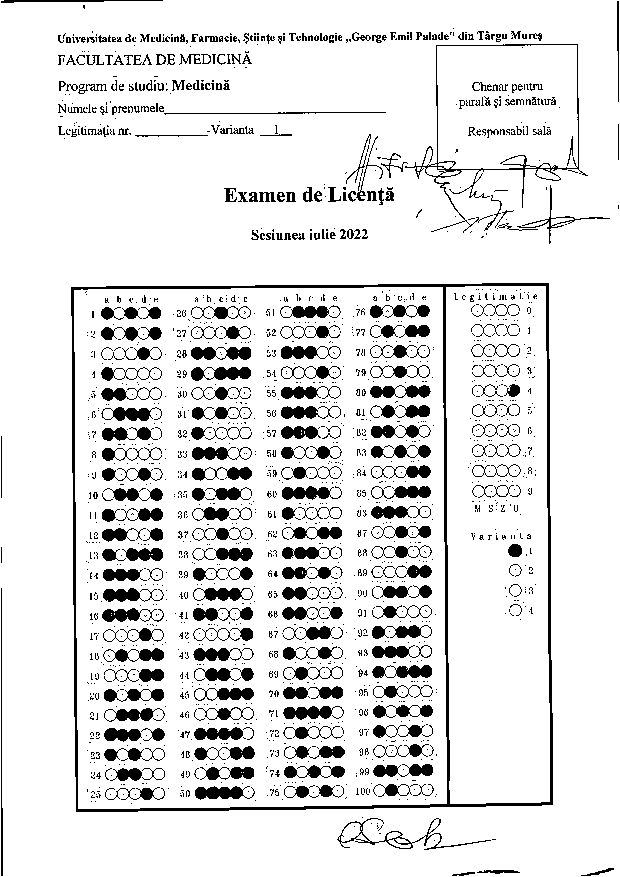 În urma Deciziei Comisiei de contestații licență iulie 2022 grilele corecte sunt următoarele: